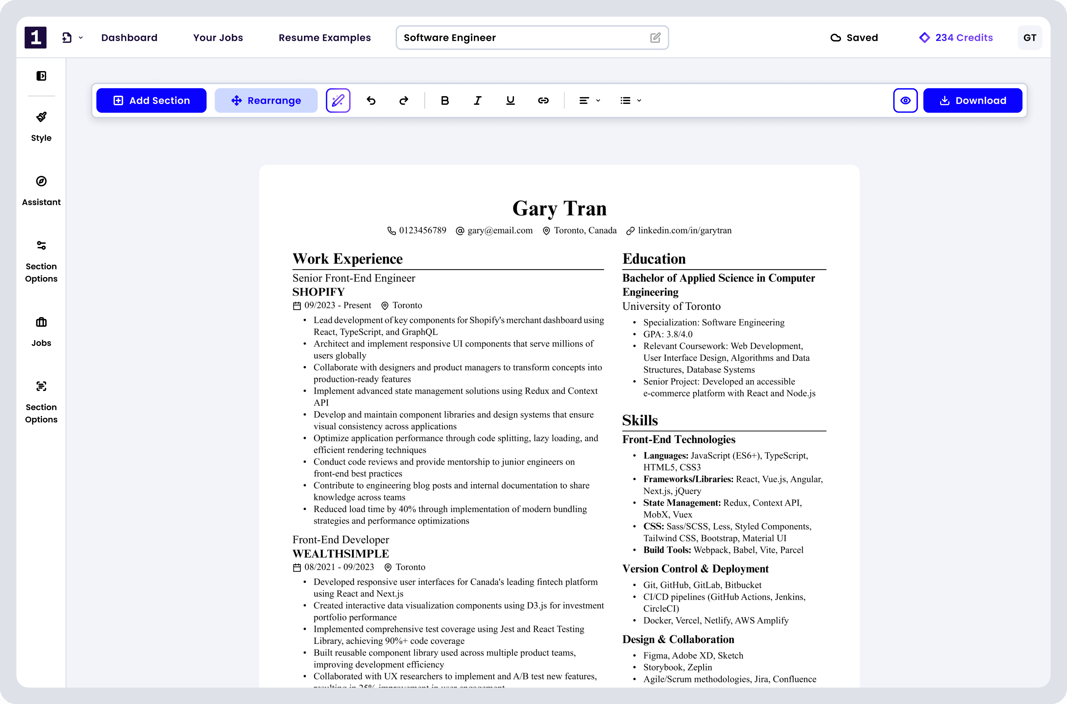 We wanted to create a resume editor that felt as flexible and familiar as Google Docs or Microsoft Word, staying as simple and intuitive as possible, whilst still supporting resume-specific structure, formatting, and optimisation.
